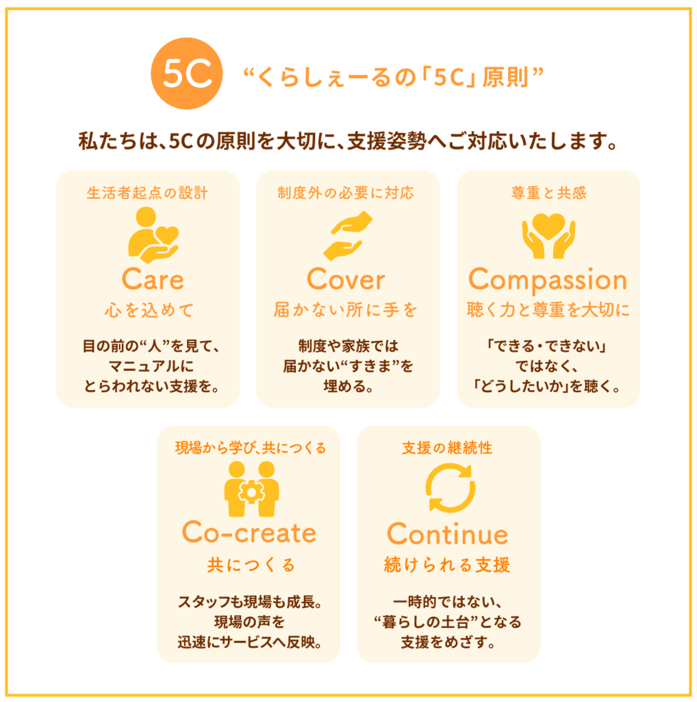 私たちは、支援される人としてではなく、「一緒に暮らしをつくる人」として関わります。