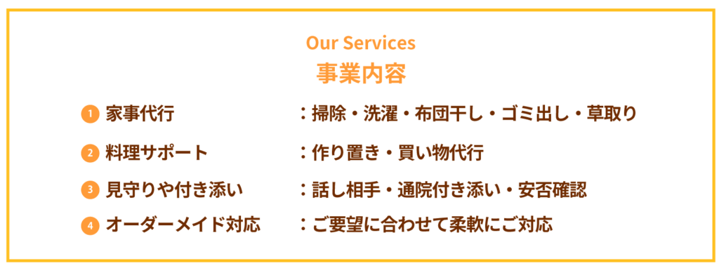 | 事業内容 | 介護保険外サービス・家事代行サービス全般 |