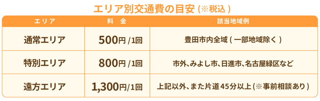例えば、定期利用で遠方エリアの場合、1回の訪問を3時間や4時間に調整することもできます。