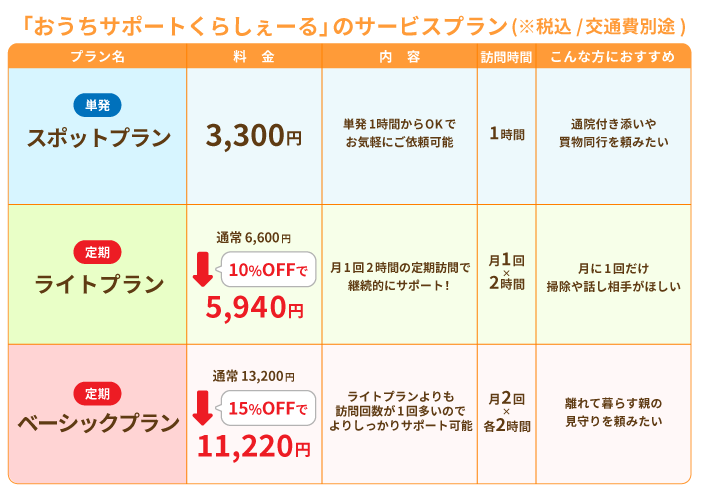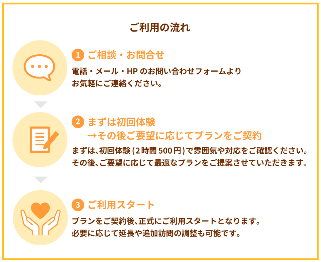 ※定期利用の場合は、お時間のご相談(訪問時間や回数の調整)に応じることが可能です。