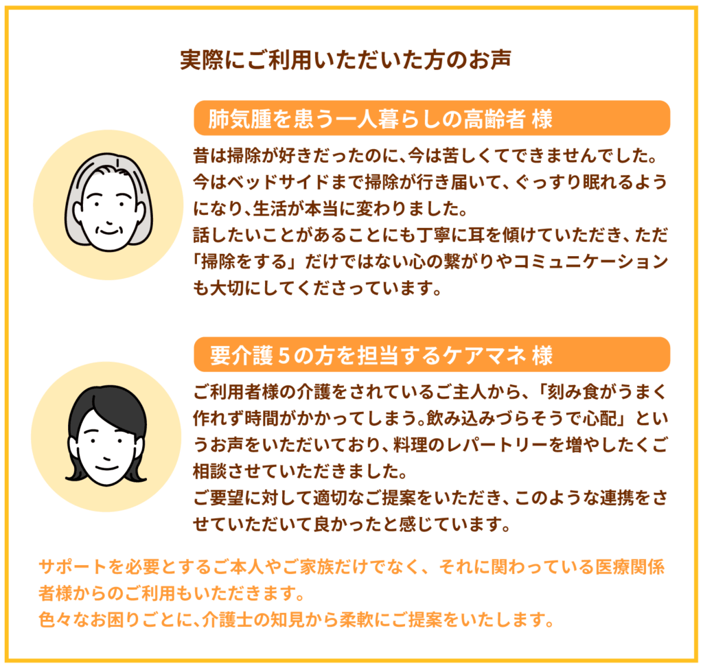 - 医療や介護の知識を活かした“非医療”の安心支援